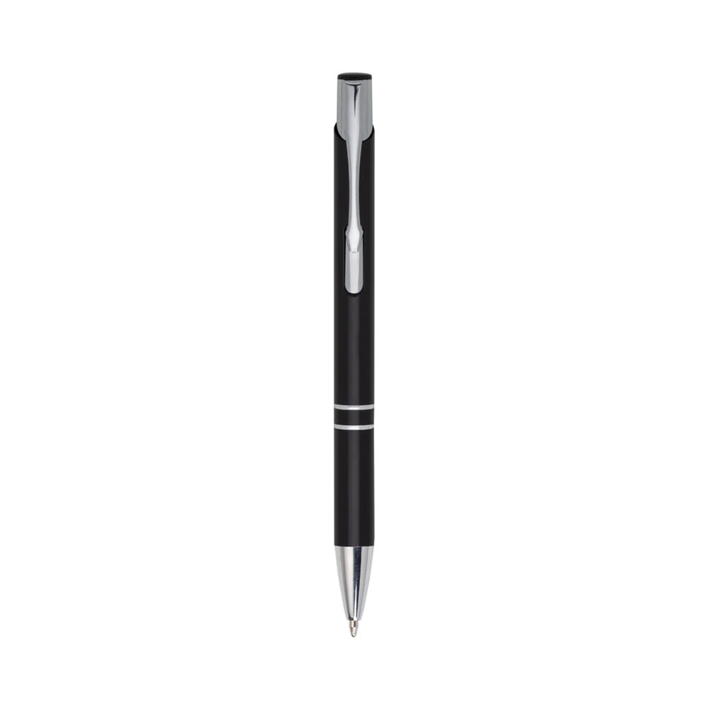 Caneta Metal Personalizada Araçatuba: Clip metal com a ponta do acionador preto, parte inferior com dois anéis prata. Aciona por clique.