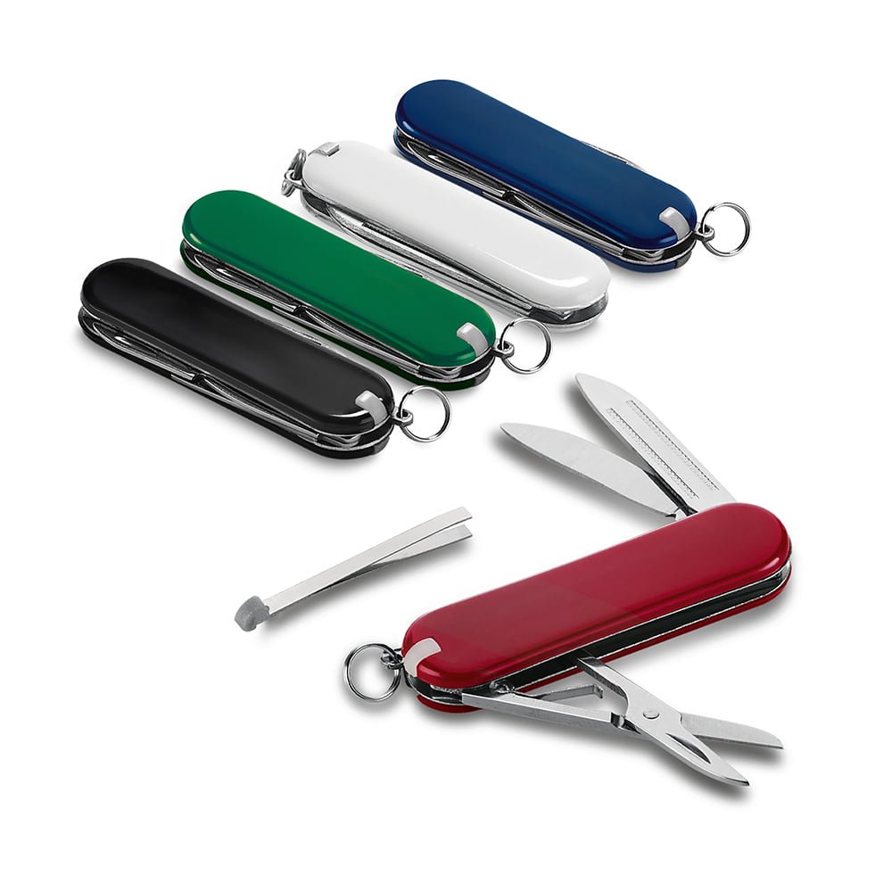 Canivete Para Brindes: ABS e metal. Com 5 funções.
