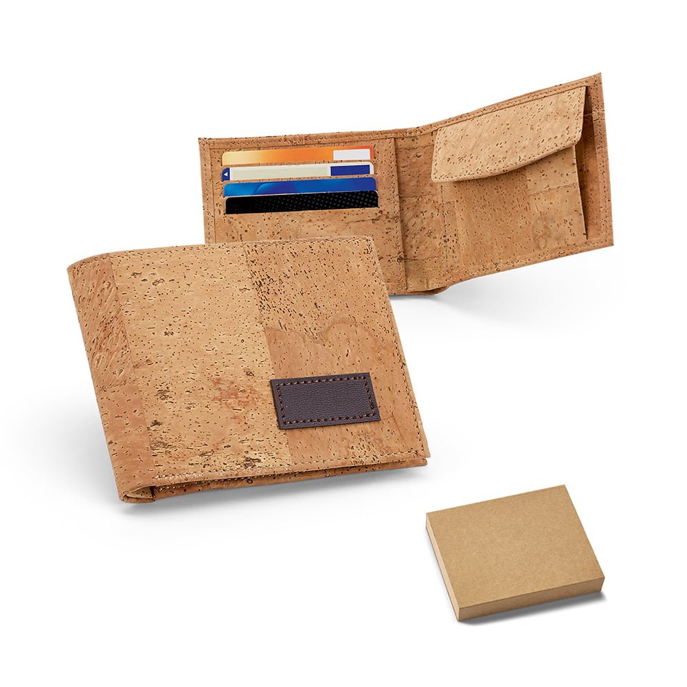 Carteira Para Brindes: Cortiça, Com porta níquel e capacidade para 4 cartões. Fornecida em caixa kraft.