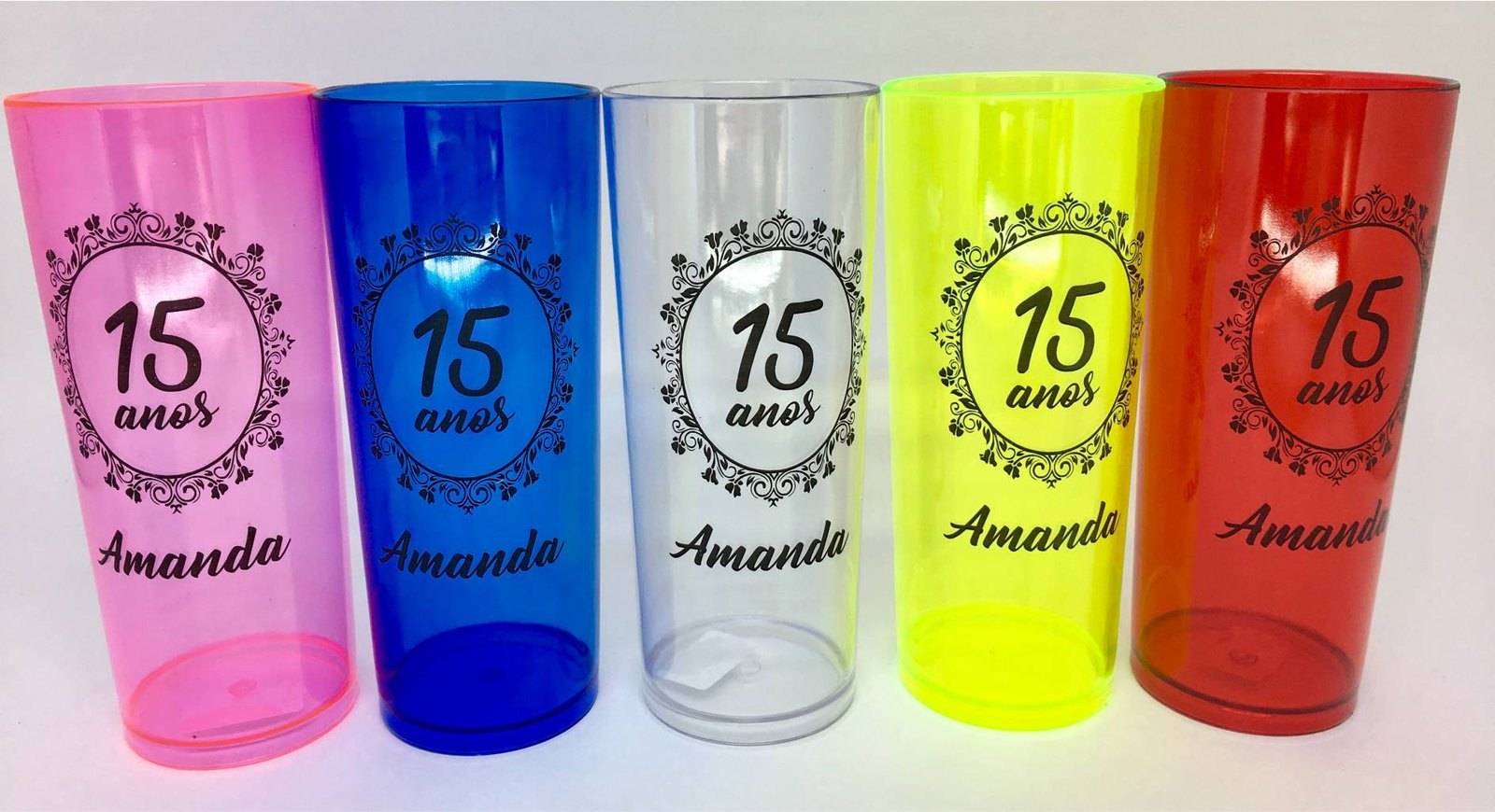 Copo Long Drink Personalizado: Copo long drink 330ml, material acrílico translúcido.