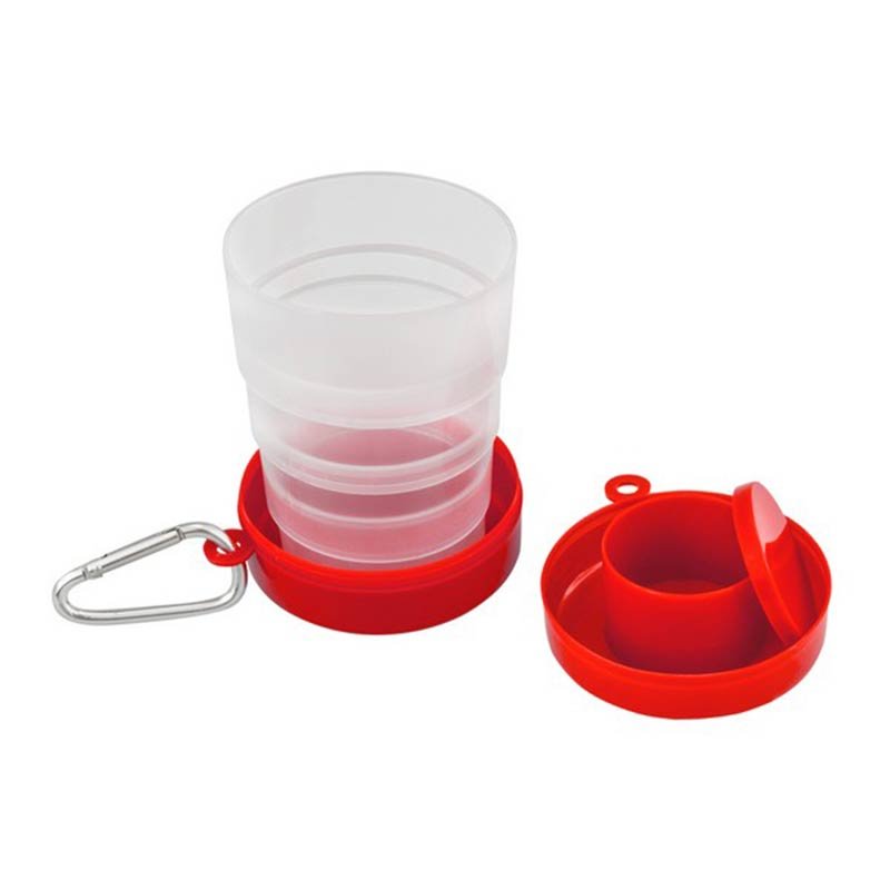 Copo Retrátil Para Brindes: 200ml de plástico com tampa porta comprimido e base colorida. Basta puxar para cima para “armar” o copo, possui “suporte” para chaveiro. Na área interna da tampa possui um compartimento para comprimidos, basta rosquear a tampa interna para abrir/fechar.