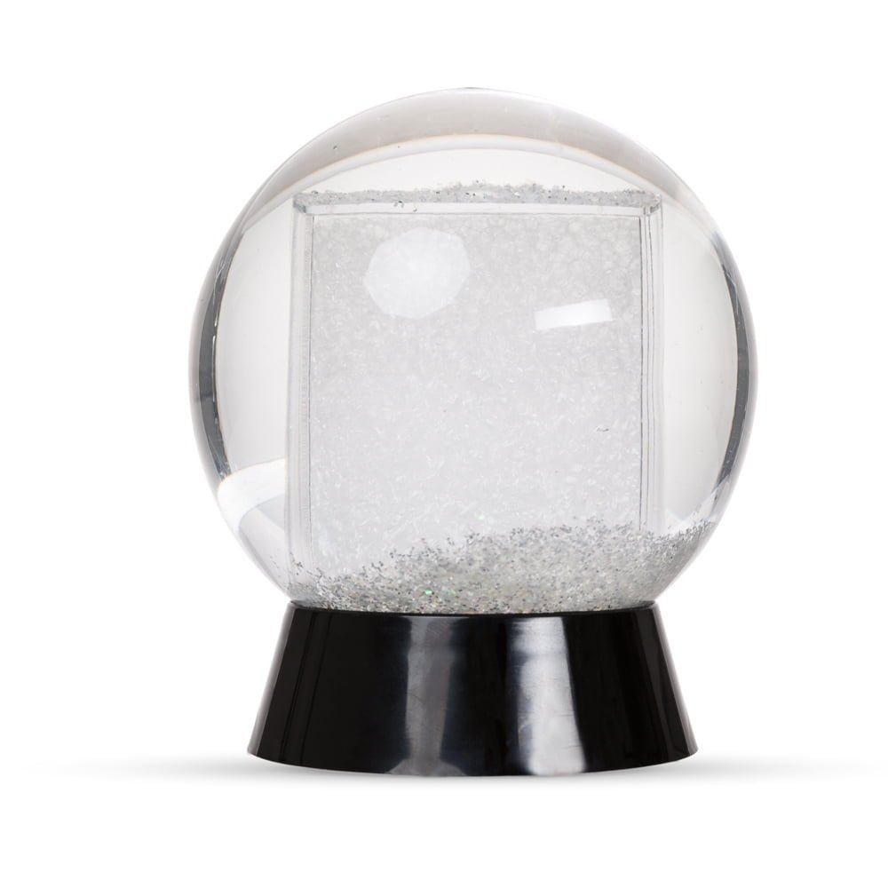 Globo de Neve Personalizado: Globo de neve plástico com porta foto. Esfera plástica resistente com glitter na parte interna, base preta pode ser retirada para inserir uma foto no suporte interno. Foto de tamanho 8,5 cm x 4,7 cm.