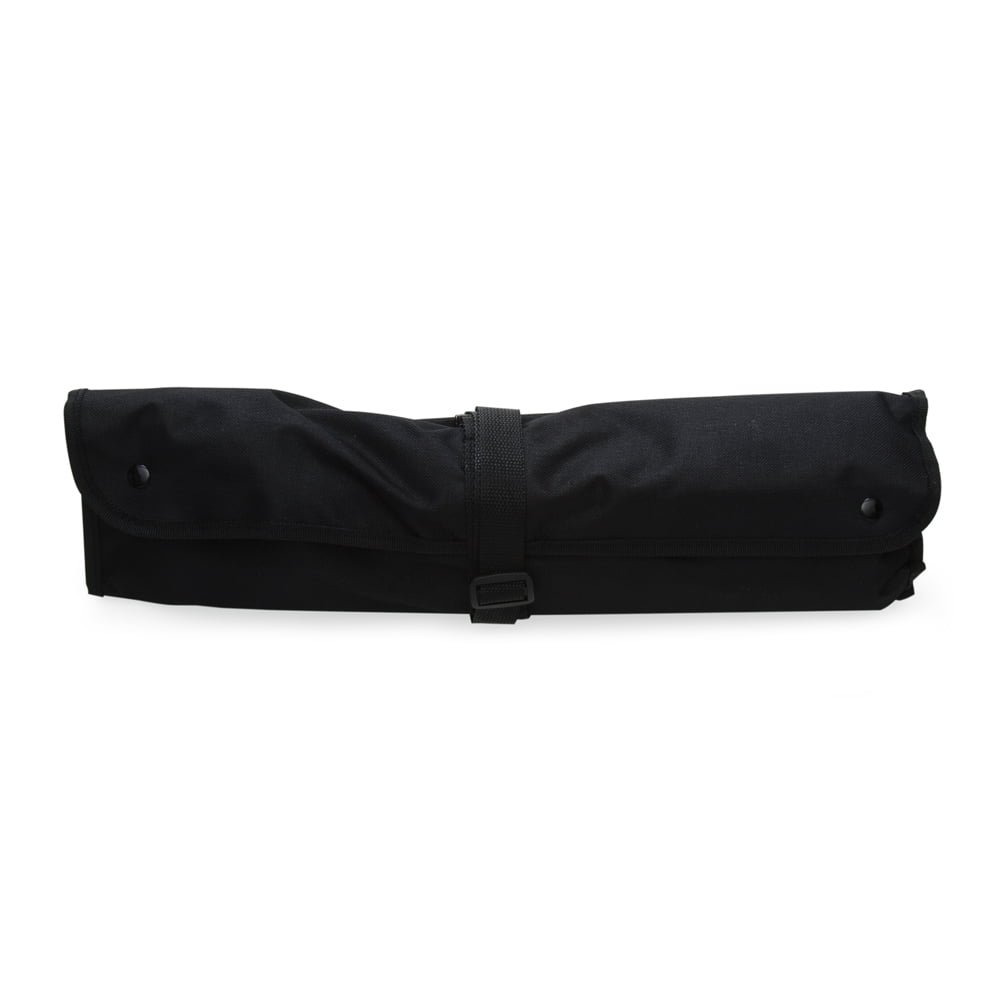 Kit Churrasco São Paulo: Contém espátula, garfo, faca, pegador, dois saleiros, luva e avental (também utilizado como estojo). Talheres de inox com acabamento de madeira e avental de nylon com alça ajustável.