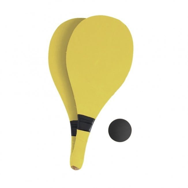 Kit Frescobol Personalizado: Kit frescobol EVA com embalagem de malha plástica. Contém 2 raquetes de madeira com revestimento EVA e bolinha emborrachada.