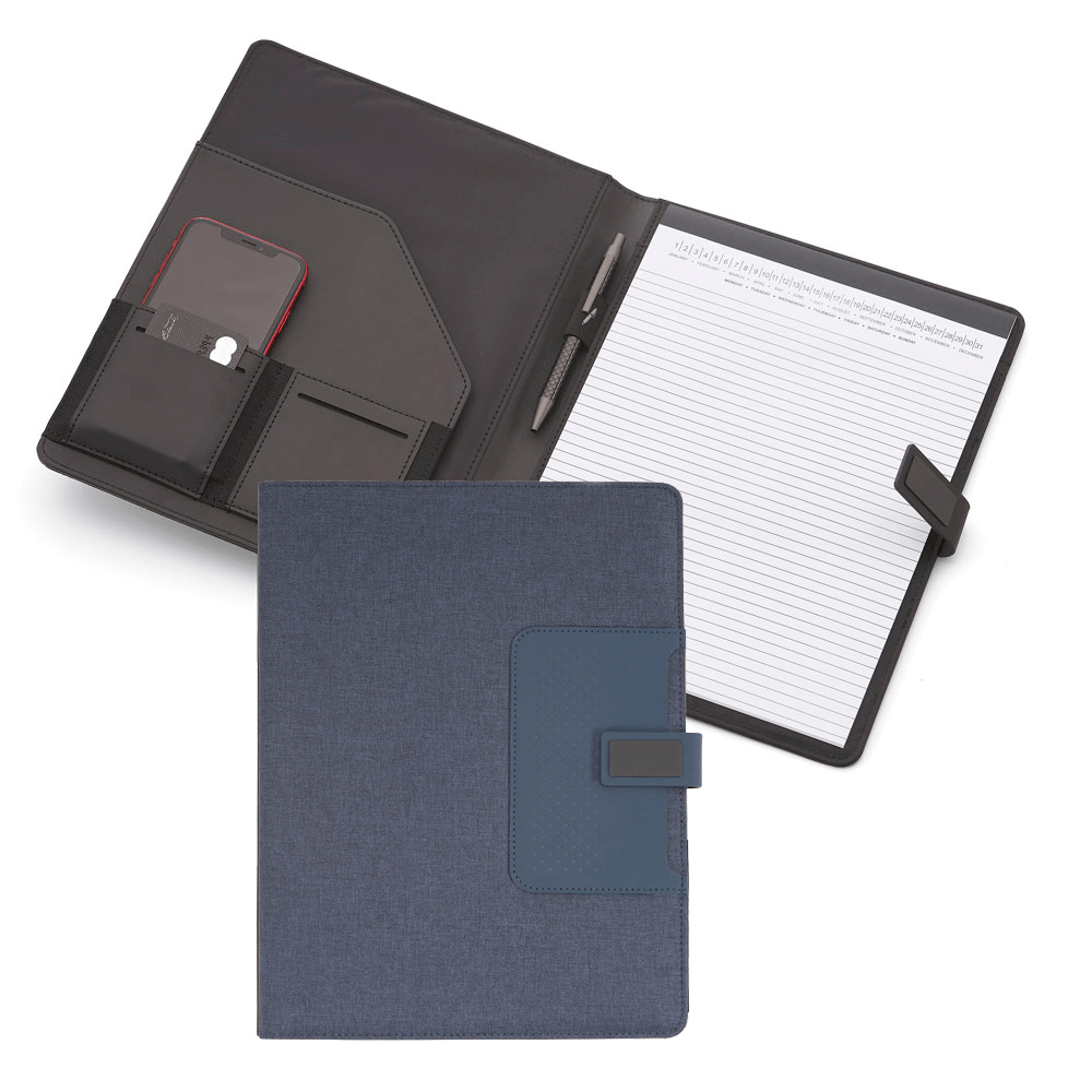 Pasta Executiva Personalizada Atacado: Pasta Executiva Almofadada com caderno de 20 folhas A4, Bolso na capa 8 x 12cm, Bolso interno para Cartões, Telefone e Documentos, Fechadura Magnética, Não acompanha caneta.
