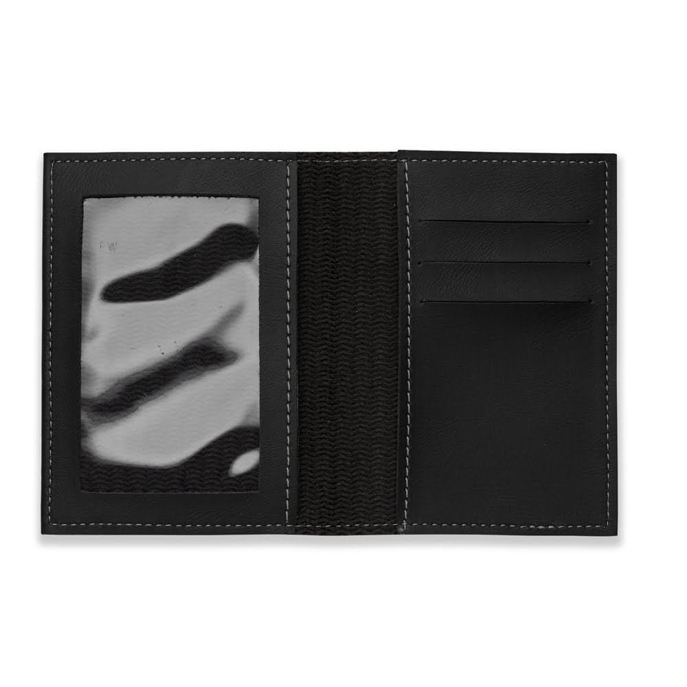 Porta Documento Personalizado: Porta documento Bidins em couro sintético, capa frente e verso lisa, parte interna com bolso de visor plástico e três divisórias no próprio couro com bolso lateral.