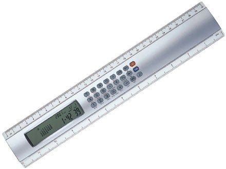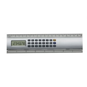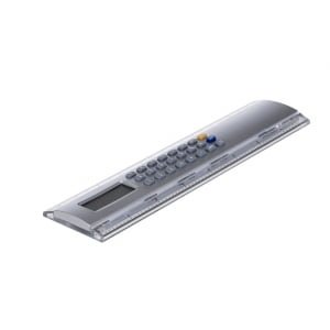 Régua Para Brindes Atacado: Plástica 20cm. Calculadora de 8 dígitos com base prata, possui as medidas cm e polegada nas laterais plásticas transparentes.